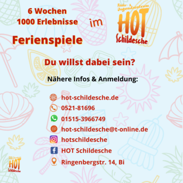 Dann schickt uns eine Email mit dem Betreff „Newsletteranmeldung HOT Schildesche“ an hot-schildesche@t-online.de.
